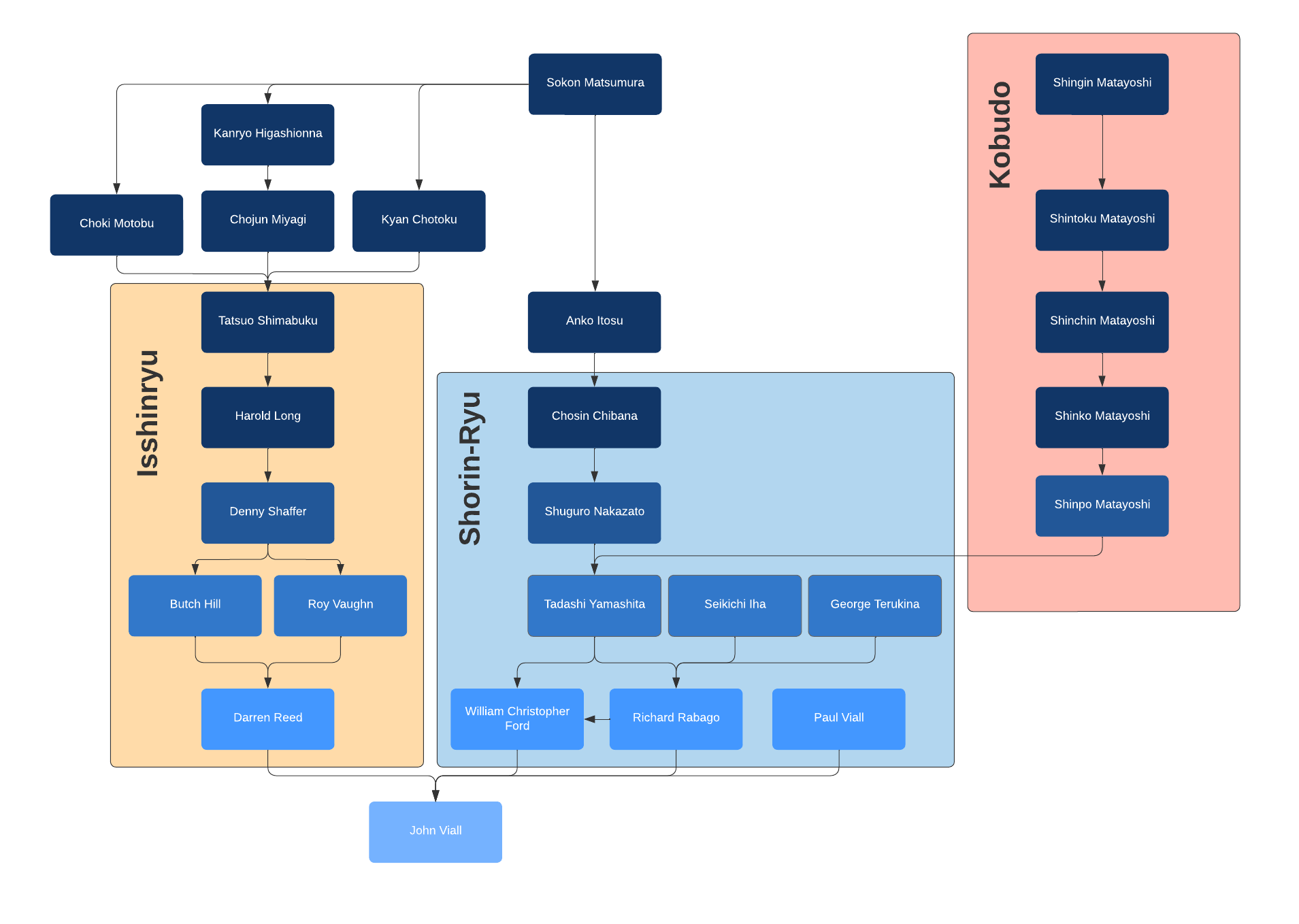2010 – While searching for a Shōrin-Ryū school to continue training, he stumbled across the Nashville Dojo, previously owned by Sensei Darren Reed. Not only is Sensei Viall happy to have found a dojo that he was pleased with, but he was also very happy to know that Nashville Dojo taught Isshinryū Karate, a style composed of both Shōrin-Ryū and Goju-Ryū. Reed Sensei immediately welcomed him and his family, and they became part of the dojo family. While training under Reed Sensei, he also had the opportunity to train with other memorable instructors: Butch Hill, Ray Clubb, Fred Jenkins, Rob Wethington, and the late Roy Vaughn.